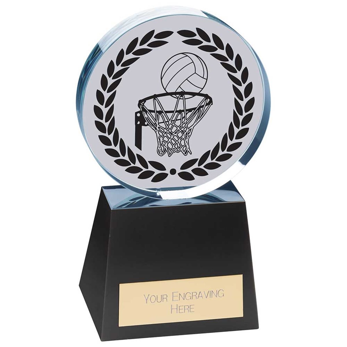 Emperor Netball Glass Award. Premium Crystal award can be personalised with your own message on the Engraving Plate. This desirable trophy makes a superb award at any presentation and is great value for money. Box Included