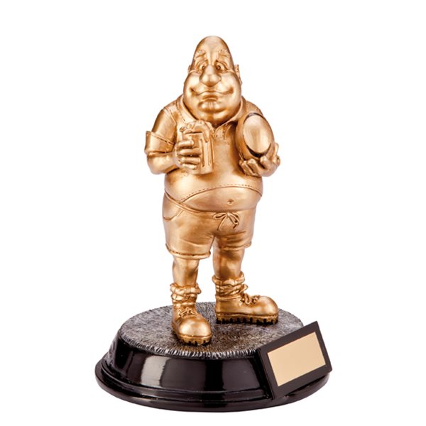 Humorous rugby trophy with a beer belly rugby player mounted on an integral base. The base comes with an engraving plate, ideal for your own inscription. This stunning award is available in 1 size only.
