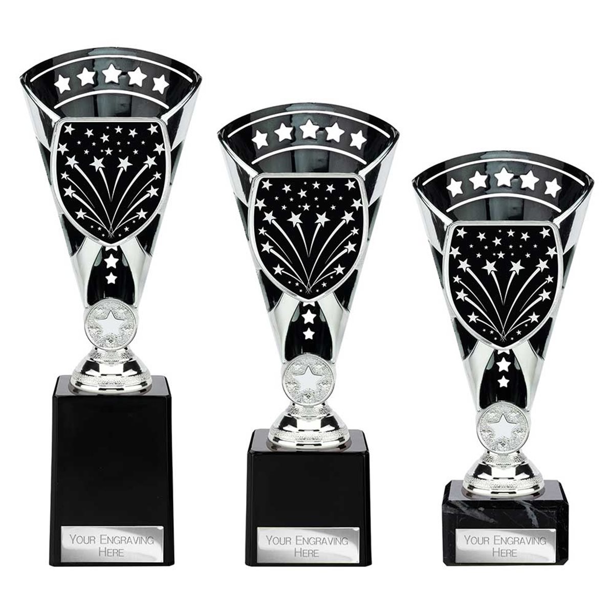 Silver and black premium plastic star trophy mounted on a weighty black marble base.