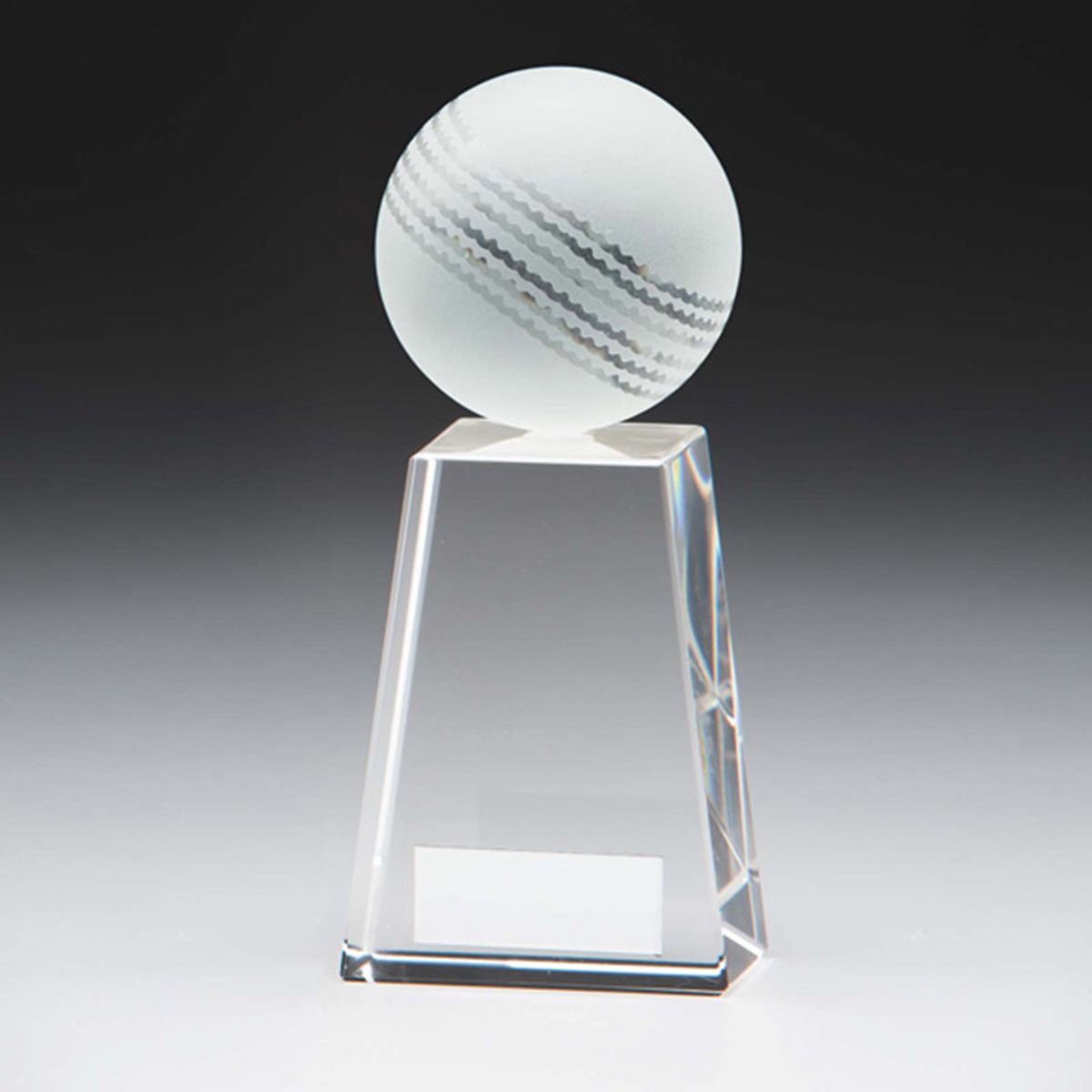Voyager crystal cricket award. The award is supplied in a silk lined presentation box and can be personalised with your own message on the engraving plate supplied. Available in 3 sizes.
